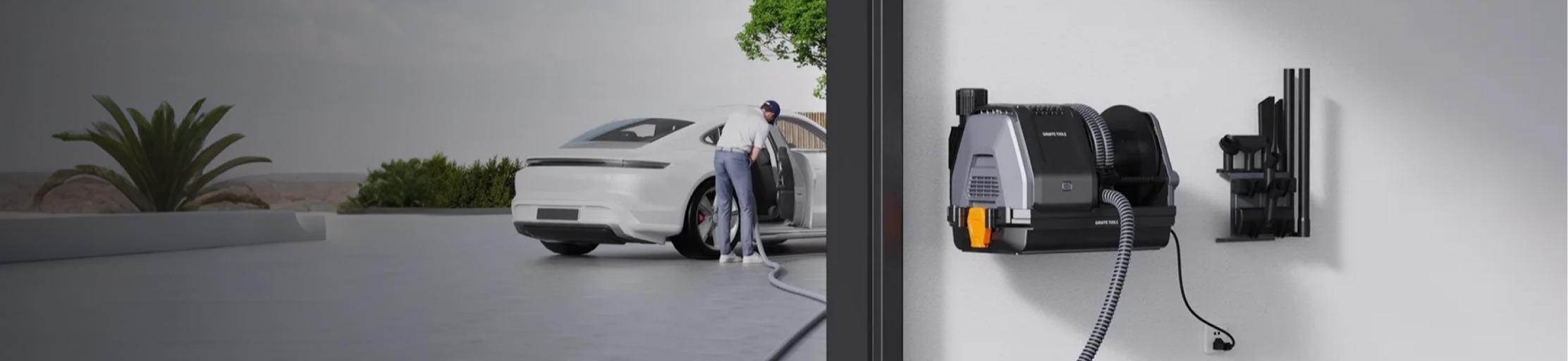 Garages, basements, or home workshops are often the toughest areas to keep clean. Grandstorm's specially designed wall mount vacuum system is the perfect solution for these environments. Storing the main unit and all accessories neatly on the wall not only frees up valuable floor space but also ensures the vacuum is always ready to go. Combined with its long, 30-foot retractable hose, its reach easily covers every corner of a large garage, eliminating the need to drag the main unit around. Cleaning has never been so unrestricted. This design philosophy makes it the ideal garage vacuum for many users.