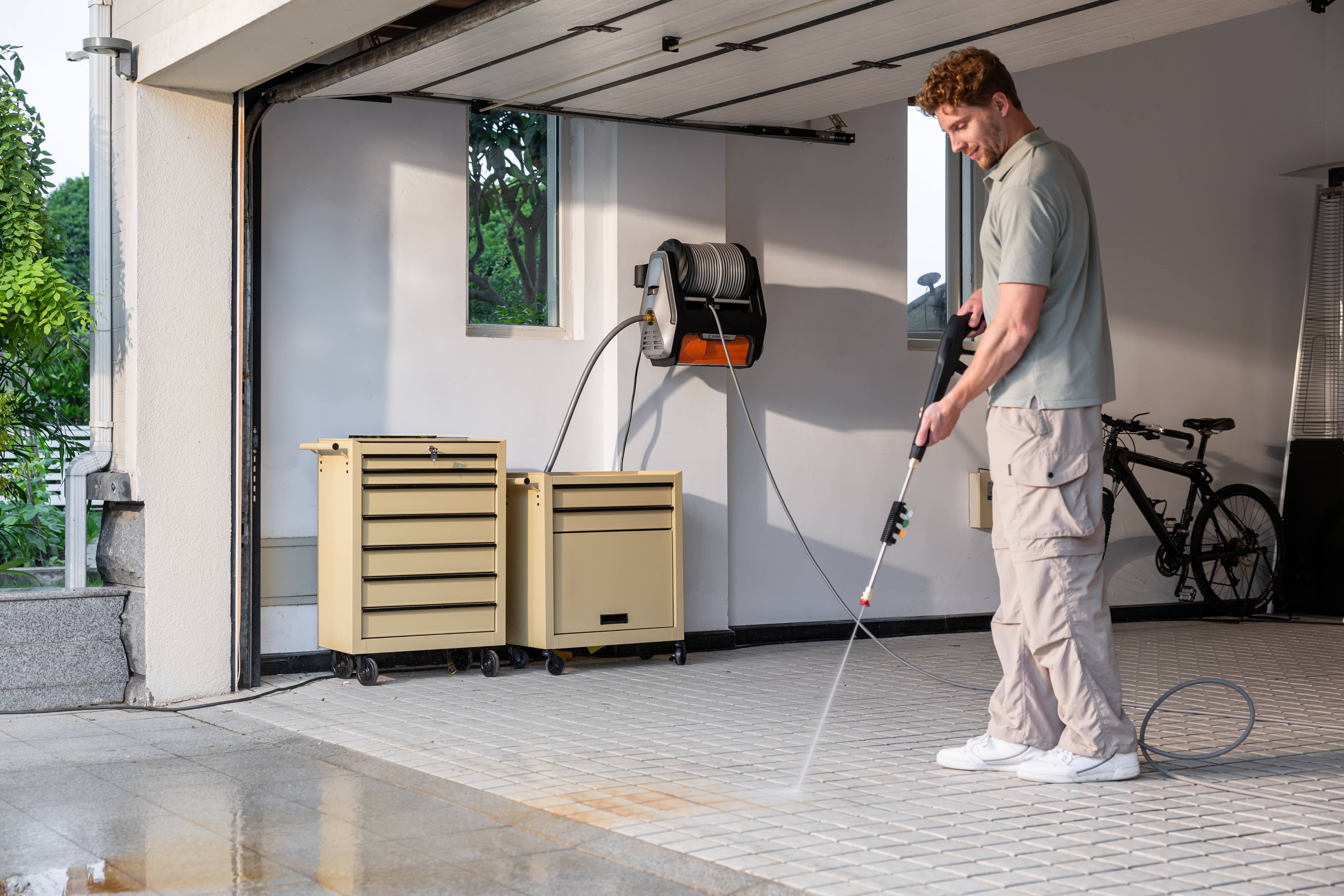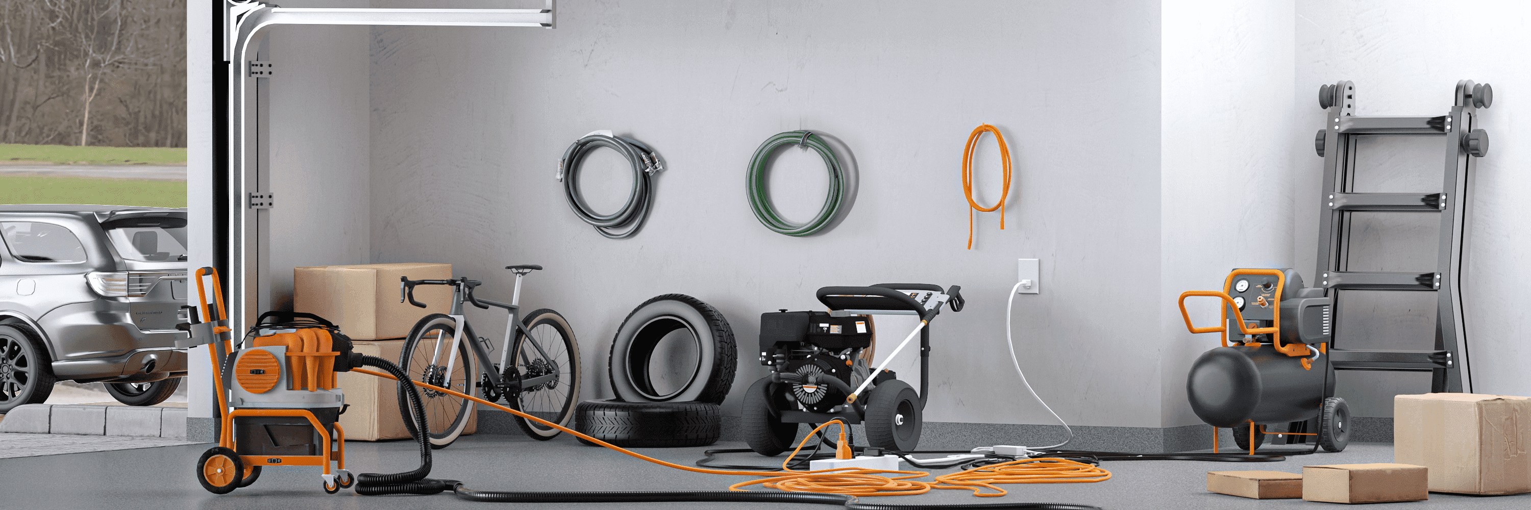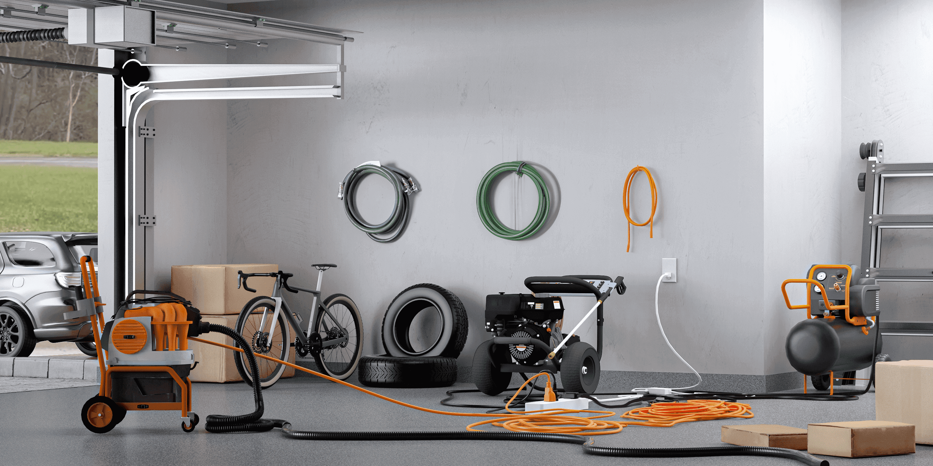 Elevate your garage and ditch dirt, mess, and tangled cords — with one cleaning system.