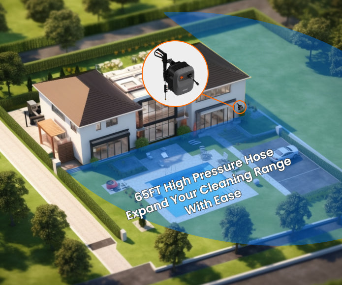 Equipped with a 20M high-pressure hose that is wear-resistant and won't be pierced by sharp objects. With a coverage area of up to 1300 square meters, it can handle any cleaning task with ease.