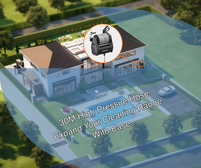 Equipped with a 30M high-pressure hose. With a coverage area of up to 930m², it can handle any cleaning task with ease.
