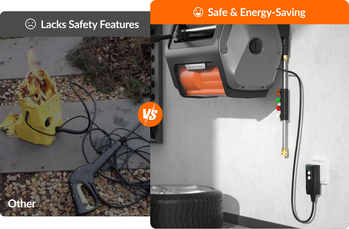 - Maximum Power, Deep Clean: Tackle stubborn dirt with up to 3300 PSI—ideal for driveways, decks, vehicles, and more. The upgraded brushless motor ensures long-lasting performance, while TTS energy-saving technology enhances efficiency—making heavy-duty cleaning feel surprisingly effortless.