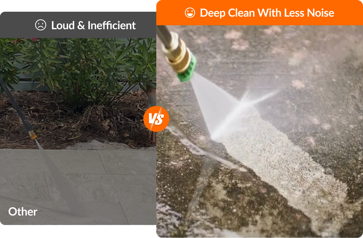 - Less Noise, More Comfort: Clean with ease at any hour. Operating at just 78–80 dB—3 times quieter than traditional gas models. The optimized motor keeps noise down, allowing you to refresh your patio or car without disturbing your household or neighbors.