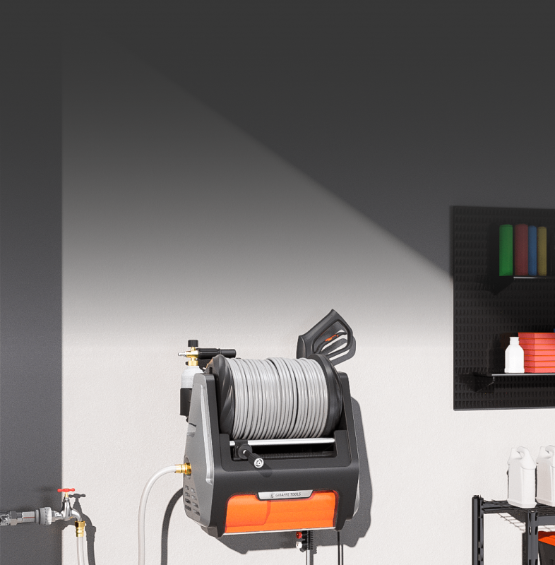 Pro is built for meticulous homeowners, car care enthusiasts, and high-demand cleaning tasks. With up to 3300 PSI, a 100ft retractable hose, and custom TPH springs for superior torque, it offers powerful, quiet, and organized performance right out of the box.